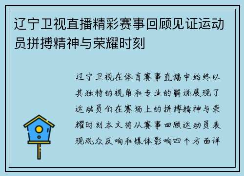 在直播3精彩赛事回顾中,我们见证了运动员们的拼搏与荣耀。这些赛事不仅展现了运动员们的卓越技能和不屈精神,也让观众感受到体育的魅力与激情。本文将从四个方面详细回顾这场盛会,包括赛事的精彩瞬间、运动员的奋斗历程、观众的热情支持以及赛事的影响力。通过这些方面的阐述,我们将更深入地理解体育赛事背后的故事和意义。 1、赛事的精彩瞬间 在直播3的赛事中,许多精彩瞬间令人难以忘怀。每一场比赛都充满了悬念和激情...